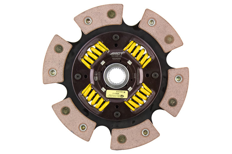 Aggressive engagement, quick shifts, mild to moderate gear rattle; Premium ceramic friction materials provide moderate wear rates and high heat tolerance; Utilizes wraparound spring windows, thicker retainer stampings and a heat-treated, spring steel drive plate to provide support, reduce stress concentrations and increase strength and reliability; Recommended for high horsepower street or race use; High burst strength and holds 28% more torque than typical organic materials