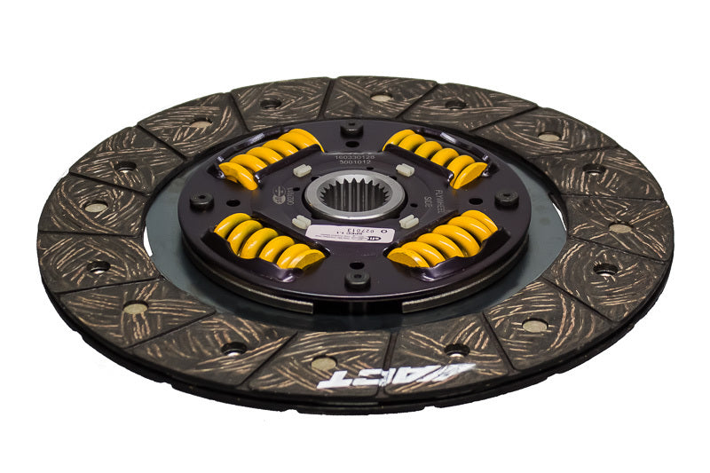 3001012 is a performance street disc and the most popular disc purchased. It features premium organic materials with high copper content for better heat transfer. Performance street discs allow for quicker shifting and smooth engagement. These discs feature a reduced marcel for faster shift action to complement ACT pressure plates. ACT spring-centered assemblies use bushings and cone springs similar to factory clutch discs. This creates frictional dampening, which improves clutch life and reduces noise. Quiet operation with increased strength and reliability. Installation Instructions Warranty