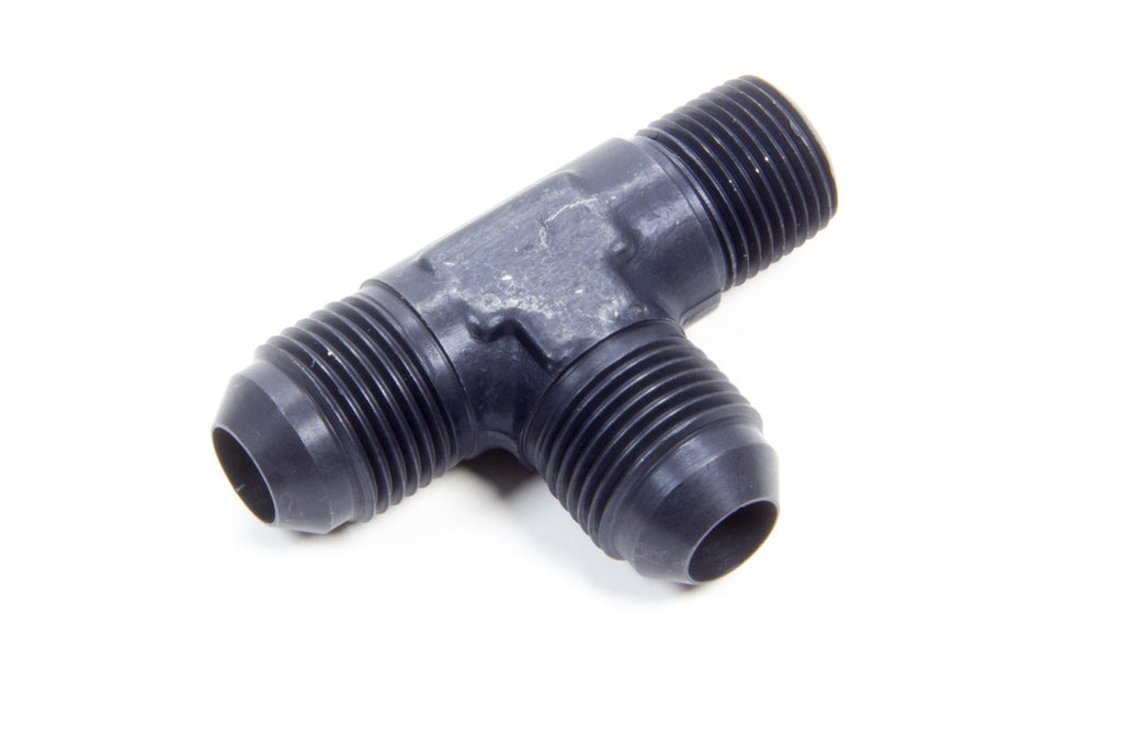 Fitting - Adapter Tee - 8 AN Male x 8 AN Male x 3/8 in NPT Male - Aluminum - Black Anodized - Each