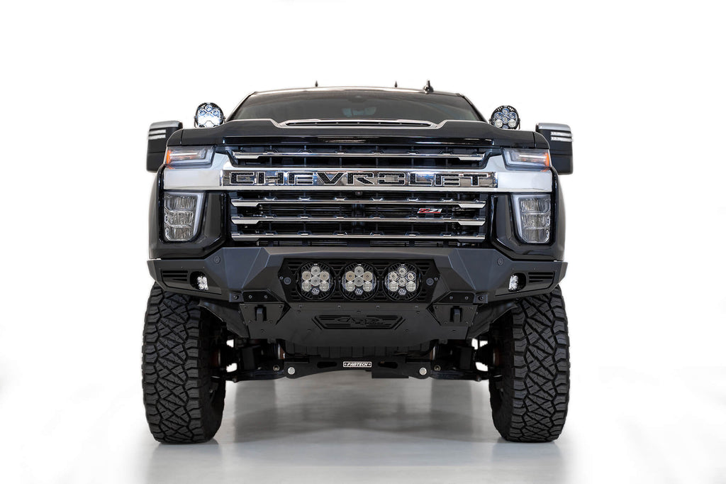 | Description_EXT | Chevy 2500 2020 - up Bomber Front Bumper With 3 Baja Designs LP6 Mounts and Dually Mounts in Sides in Hammer Black with Satin Black panels |