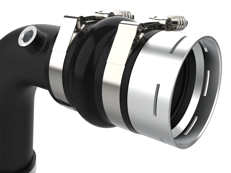 Smooth transitions in the mandrel-bent aluminum pipes decrease turbulence and minimize pressure loss, increasing horsepower and torque. This charge pipe kit provides a smooth transition between the turbo and the engine for lower operating temperatures and increased power.This kit includes high-quality, stainless-steel, spring-loaded T-bolt clamps and heavy-duty, 5-ply, polyester reinforced silicone couplings. This charge pipe kit also features factory style billet aluminum quick-connect adaptors with o-ring seals to ensure a leak-free fit while maintaining superior strength and durability. Finished in wrinkle black powder coating with a unique laser-etched aFe POWER logo for a custom look. When it comes to engineering for power, performance, protection and value, aFe POWER is the only choice.
