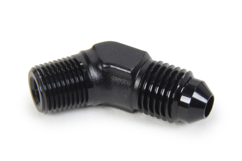 Fitting - Adapter - 45 Degree - 4 AN Male to 1/8 in NPT Male - Aluminum - Black Anodized - Each