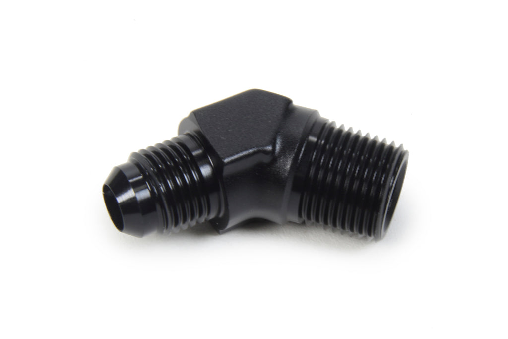 Fitting - Adapter - 45 Degree - 6 AN Male to 3/8 in NPT Male - Aluminum - Black Anodized - Each