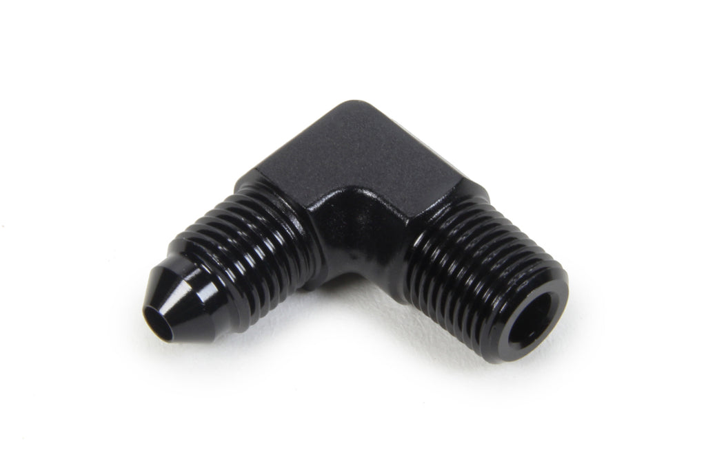 Fitting - Adapter - 90 Degree - 3 AN Male to 1/8 in NPT Male - Aluminum - Black Anodized - Each