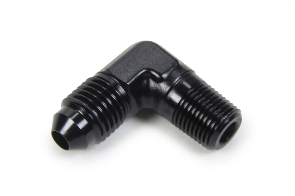 Fitting - Adapter - 90 Degree - 4 AN Male to 1/8 in NPT Male - Aluminum - Black Anodized - Each