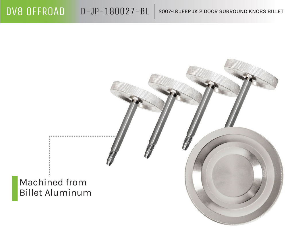 | Description_MKT | Don?t go topless without a set of billet aluminum door surround knobs to replace the stock ones from the factory that deteriorate over time. |