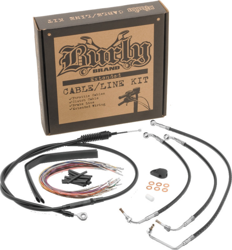 Includes braided steel brake line, extended clutch cable, extended throttle cables and all necessary wiring
