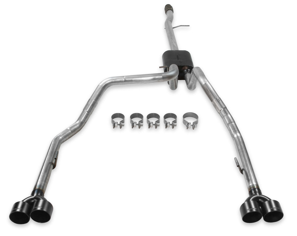 Exhaust System - American Thunder - Cat-Back - 3 in Diameter - Dual rear Exit - Dual 4 in Black Ceramic Tips - Stainless - Natural - 5.3 L - GM Fullsize Truck 2019-21 - Kit
