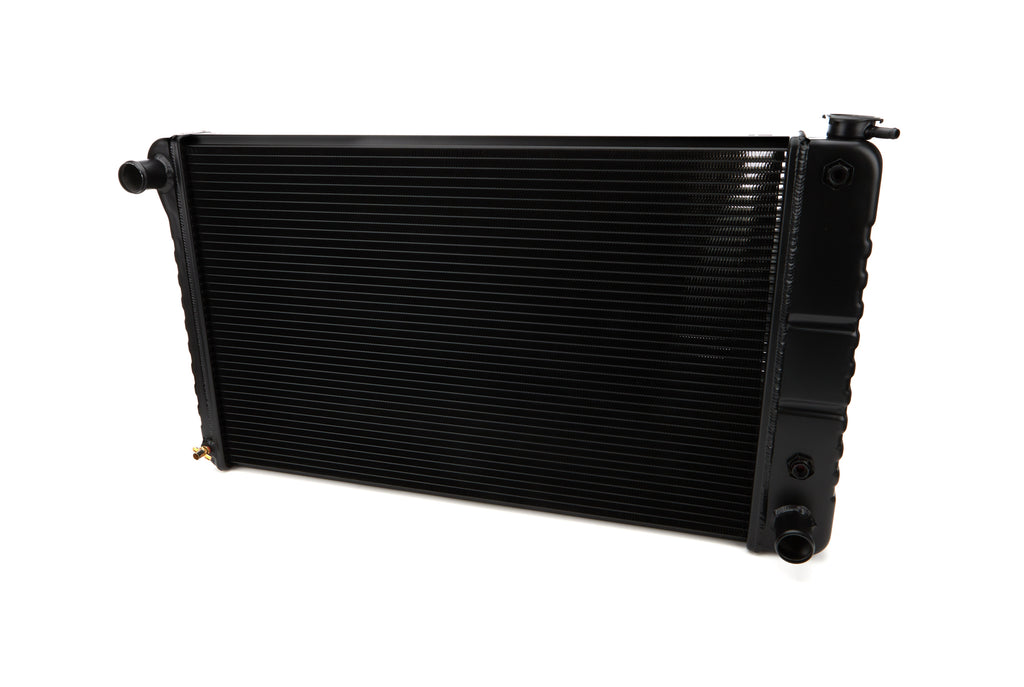 Radiator - Direct Fit - 34.5 in W x 18.625 in H x 3.375 in D - Single Pass - Driver Side Inlet - Passenger Side Outlet - Aluminum - Black Paint - GM A-Body 1968-71 - Each