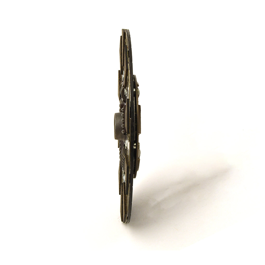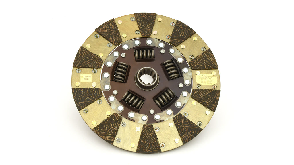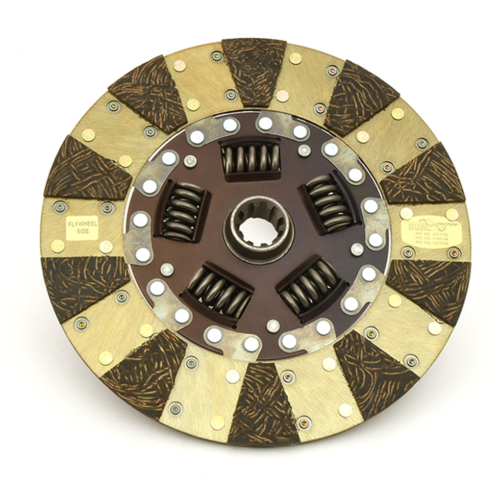 The Centerforce(R) Dual Friction(R) Clutch Series is a performance matched pressure plate & disc combination featuring the patented Centerforce centrifugal weight system (where applicable) and specialized machining processes to provide a performance clutch that offers exceptional street characteristics, while offering outstanding holding-capacity and durability. Furthermore, the Centerforce Dual Friction disc has an organic full facing on one side for longevity and an organic segmented facing on the other side providing increased holding capacity. Some applications have the organic segmented facings of both sides. The Dual Friction clutch is engineered for those who are looking for the ultimate in street/strip holding power and performance without sacrificing pedal effort and driver control. While the Dual Friction has been engineered primarily as a street clutch it can be used in mild competition applications.