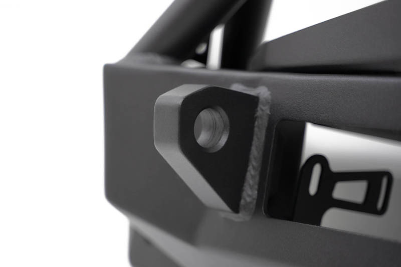 This stubby winch front bumper was designed to maintain good clearance off-road, recovery options, and supplemental lighting. It is compatible with the Wrangler JK & JL, as well as the Gladiator JT. Multiple size winches can be installed in a recessed winch tray behind the protective tubular bull bar. 1-inch thick D-ring mounts that take ?-inch shackle pins provide additional recovery options. An inset light mount in the center of the bumper fits the DV8 Elite 20?, Baja Designs 20?, or Rigid 20? dual row light bars. The bumper is finished in a micro-texture black powder coat, and features a completely bolt-on installation.