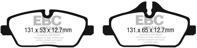 If you simply need a quality OEM replacement pad, look no further than Ultimax. Made in the UK Bristol EBC Brakes manufacturing plant Ultimax is a beautifully engineered brake compound that lasts well, produces minimal dust and is the perfect choice for the urban or daily driver. Why spend more if all you need is a quality replacement pad.The Ultimax pad does include a small percentage of steel fibre to achieve its price point, far less content than our competition where steel fibre content can attain 50 volume and this optimum fibre blend is what makes Ultimax both popular and unique amongst brake blends .Once bedded in Ultimax will inspire confidence in any car light truck or SUV no matter how you drive.Its universal heat range abilities and low rotor wear are additional benefits of the Ultimax pad range which is the EBC worldwide number one selling brake with numbers of sets sold running into tens of millions over the recent years. Unlike many of our performance grades Ultimax has remain unchanged as a pad compound for ten years now, a true testament to its success and customer acceptance. Why change a winning formula.Black coded in the EBC range EBC Ultimax is a fully ECE R 90 approved brake pad range and at its lower price point, less than HALF the price of original parts yet TOTALLY EQUIVALENT by nature of its R 90 brake safety approval, Ultimax offers great value for money and first class driving safety.When replacing brakes of any kind please remember how important brake safety is to your own well being and either have a professional mechanic install your new brakes or if you are a qualified mechanic use the EBC installation DVD as a guide in support of your vehicle owner's manual. These installation guide DVD tasters can be viewed here and the full DVD purchased from online vendors.
