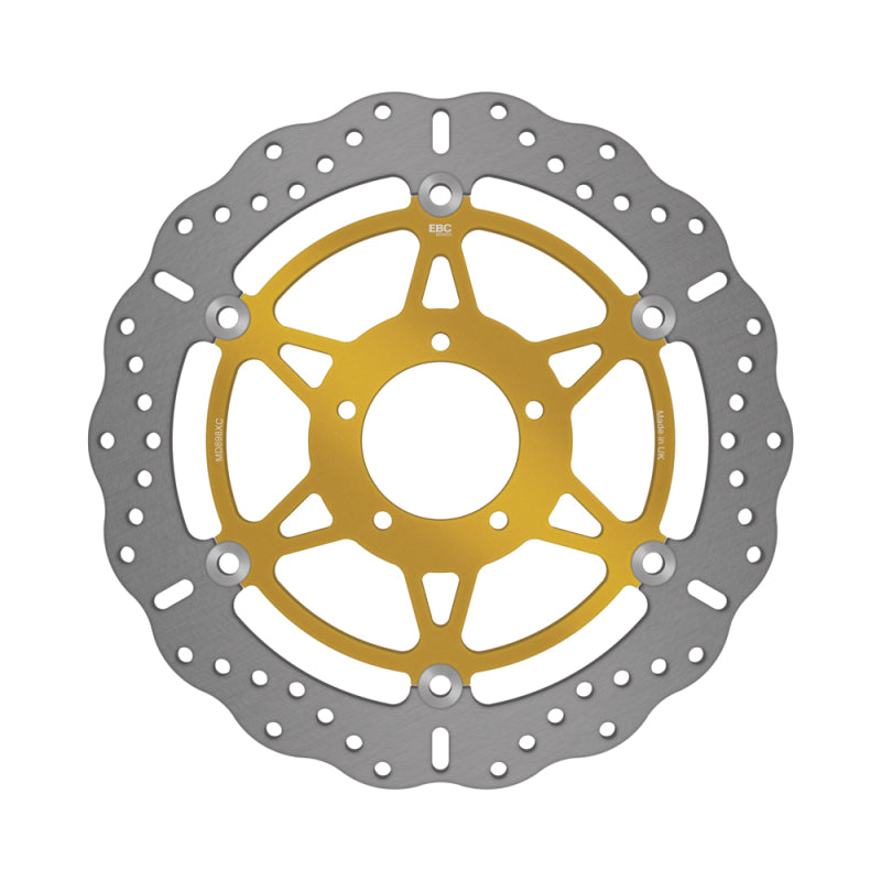 EBC Contoured Rotors are 100% British-made using heat-treated and tempered DB420 stainless steel to produce a high-quality direct bolt-on replacement for your OE rotors. They've been thouroughly tested to TUV standards and approved for use on scooters and street bikes.