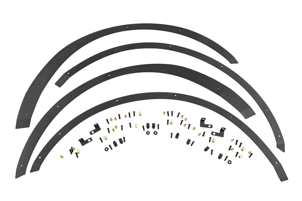 Maximum Clearance. Articulation is the name of the game when taking to the trails. If you’re looking for the absolute maximum amount of tire clearance possible then look no further than Rough Country’s Ford Bronco Fender Delete Kit. \Stylish Appearance and Functionality. Removing your Bronco’s fenders offers the maximum range of clearance for flexing and articulation, but the ugly factory inset that is left is an eyesore. Rough Country’s Fender Delete Kit helps dress up and protect this area for a clean, finished look. Once installed, you’ll gain a better line of sight for tackling approach angles on tough trails. Each section is made of durable, all-steel construction that’s laser-cut for a precise fit and powder-coated black to withstand the elements. \Installation.  Torn between needing the flare on occasion and being Offroad ready for those tight trails? Rough Country's supplied nutserts and hardware make future swaps between running a fender flare and RC’s fender flare delete kit quick, easy and hassle-free. Requiring drilling to complete the installation process, an estimated time frame of 2-3 hours is predicted to install.\Limited Lifetime Replacement Warranty. Rough Country's Fender Delete Kit is backed with a limited lifetime replacement warranty towards manufacturer defects. As such, the product is protected from structural and workmanship damage after the date of purchase. With our industry-leading warranty give yourself peace of mind when using Rough Country's Suspension products!