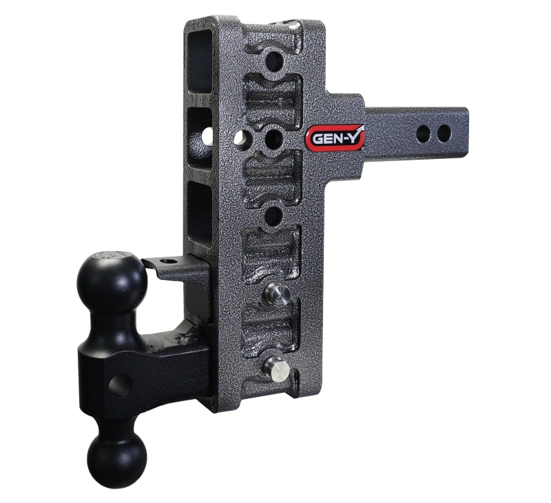 GEN-Y's Mega-Duty Adjustable Drop Hitches start at 10,000 LB towing capacity and go up to 32,000 LB towing capacity. There are multiple drop options as well depending on your trailer towing needs.