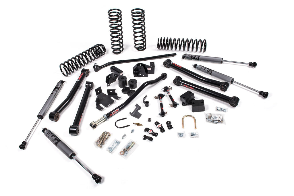 | Description_MKT | Easy to install bolt on performance suspension to handle the toughest off road trails and drive you home after. These J-Konnect Systems build off the base J-Venture to add J-Link lower control arms and other bracing for equal parts on-road handling and off-road capability and strength. These lower control arms not only add front caster and rear wheelbase, they are a serious upgrade to the strength over the factory control arms. Built 2” x .250-wall DOM tubing while offering better NVH isolation with large factory style rubber bushings at both ends. The integrate a drag bar flip kit to flatten out the steering angle for improved handling as well as provide front and rear track bar braces. These combined with the dual rate coil springs, adjustable track bar, quicker disconnects and more offer improved trail performance and strength while catering to on-road handling needs. Rounding out these kits are a set of FOX 2.0 Performance Series IFP shocks offer impressive on-road comfort and offroad performance featuring an aluminum body for faster heat dispersion. |