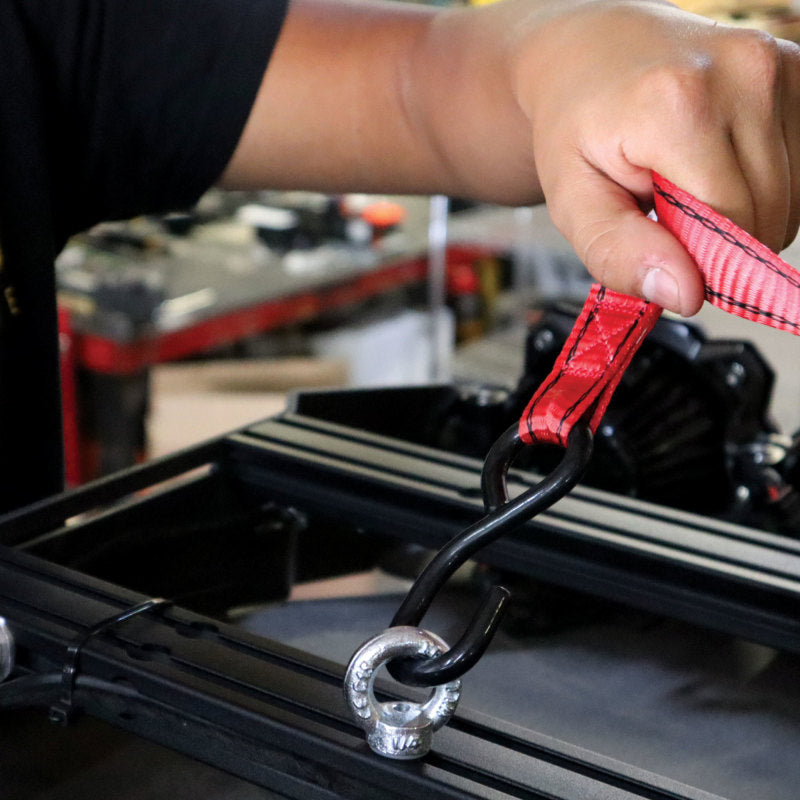 Our Eye Nuts for our KC M-RACKS Roof Racks are a great way to more easily mount and attach gear to the top of your roof rack. From storage containers, to bikes, to anything else, these easy to install tie-down points for your roof rack can help you strap it down. Included in each kit are two carriage bolts, two plastic washers, and two Eye Nuts.