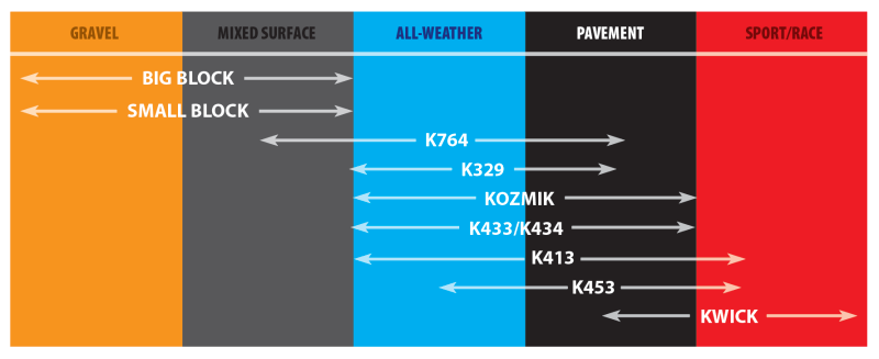 Race inspired, super-sticky compound combined with reversed tread patterns on front and rear to enhance water drainage and grip. Designed for low rolling resistance and optimal cornering traction
