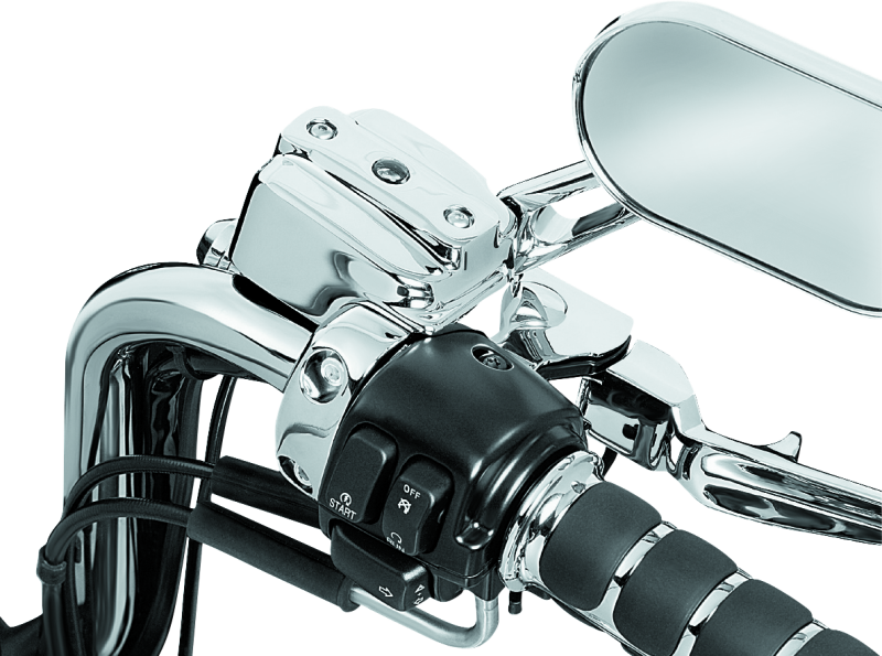 An inexpensive, fast and easy way to completely finish chroming most hand controls. The clutch perch is a complete chrome replacement unit. The master cylinder cover dresses up the reservoir and covers the entire visible hand brake bracket assembly.