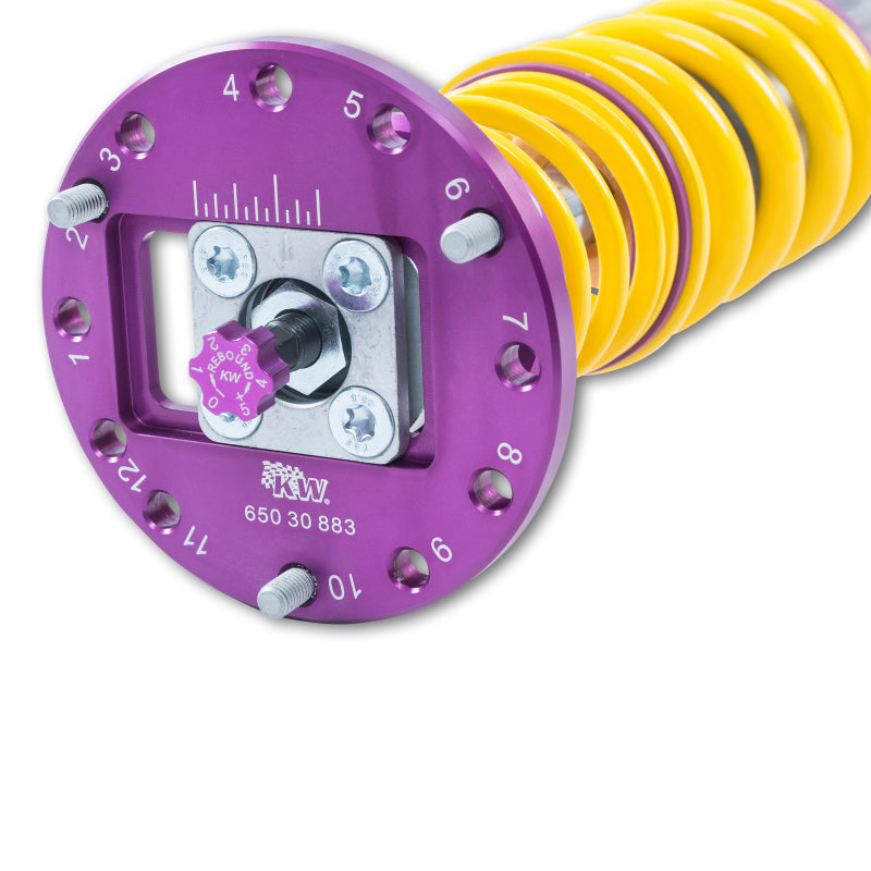 Designed to maximize the performance on vehicles with DOT-R and other ultra high-performance tire setups. KW V3 Clubsport coilovers are the ideal choice for double-duty street cars, use at HPDE's(high performance drivers education), time attack or time trials, and club level racing. The Clubsport setup was specially designed on the Nordschleife and the continuous adjustable ride height allows for fine corner weight or making setup changes. The TVR-A and TVC-A valve technology -provide an unmatched level of separately adjustable damping for the rebound and compression enabling a customized set up appropriate for the vehicle's modifications such as weight, tire characteristics, and other various conditions. The KW V3 Clubsport INOX-LINE coilover kit is the ideal tool for performance-oriented drivers and experienced tuning enthusiasts who place a strong emphasis on the overall performance of their suspension. The KW V3 Clubsport features patented TVR-A and TVC-A technology -hat provides separately adjustable rebound and compression damping. The extensive Adjustment -angle of the independently configurable rebound and compression make it easy to directly influence the steering behavior, directional stability, grip and handling characteristics for confident and repeatable results at the limit of driving dynamics.