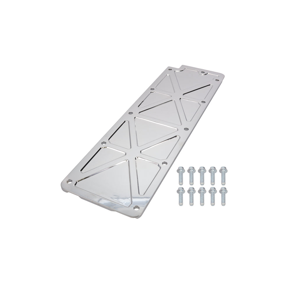 | Description_MKT | If you've dressed up your engine but there's just something missing, add some style in an unlikely place with a trussed style aluminum valley pan cover from TSP. It is lightweight and comes in black and polished finishes. |
