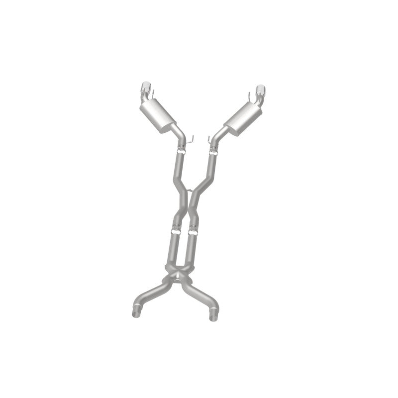The MagnaFlow 2010-2013 Chevrolet Camaro Competition Series Cat-Back Performance Exhaust System 16483 brings an aggressive, attention-grabbing edge to the deep resonant exhaust note we're so well known for. This exhaust kit is designed to enhance your 6.2L 2010-2013 Chevrolet Camaro with dyno-proven performance made possible thanks to fast-flowing mandrel bent 3in. main piping and 2 Straight-Through mufflers ending in a Dual Split Rear exit with 4in. Polished Welded-On Double Wall Angle Cut Folded Edge tips featuring a sporty finish. The exhaust system's cat-back layout replaces your ride's exhaust system from near the catalytic converter on back. Exhaust system 16483 is engineered to make your vehicle's engine produce Aggressive exterior and Moderate interior sound levels, befitting its competition-oriented design. 16483's direct-fit design makes installation a breeze thanks to the use of advanced 3D scanning techniques. This performance exhaust system is made of 100% durable and corrosion-resistant stainless steel and produced using CNC precision robotic manufacturing, all backed by MagnaFlow's limited lifetime warranty. Please check to ensure compliance with local noise regulations.