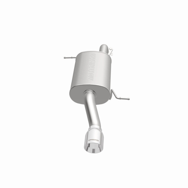 The MagnaFlow 2011-2014 Mazda 2 Street Series Axle-Back Performance Exhaust System 15555 brings enhanced engine sound and dyno-proven performance to your 1.5L 2011-2014 Mazda 2 with a healthy helping of our deep, resonant signature exhaust note at Moderate exterior and Mild interior sound levels. Thanks to its durable, corrosion resistant stainless steel design, this Mazda 2 exhaust system will handle whatever tarmac you decide to leave your mark on. This performance exhaust kit features an axle-back layout designed to replace your Mazda 2's exhaust system from near the rear axle on back. With its fast-flowing, mandrel bent 2.25in. main piping and 1 Straight-Through mufflers ending in a Single Straight Passenger Side Rear exit with 3.5in. Polished Welded-On Double Wall Angle Cut Folded Edge tips, your ride will be sounding as awesome as it looks. Extensive 3D scanning during development has resulted in a direct-fit design that you can easily install yourself. 15555 is produced using CNC precision robotic manufacturing techniques and is backed by MagnaFlow's 1-year limited finish warranty and limited lifetime construction warranty.