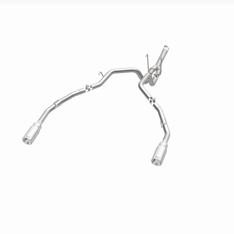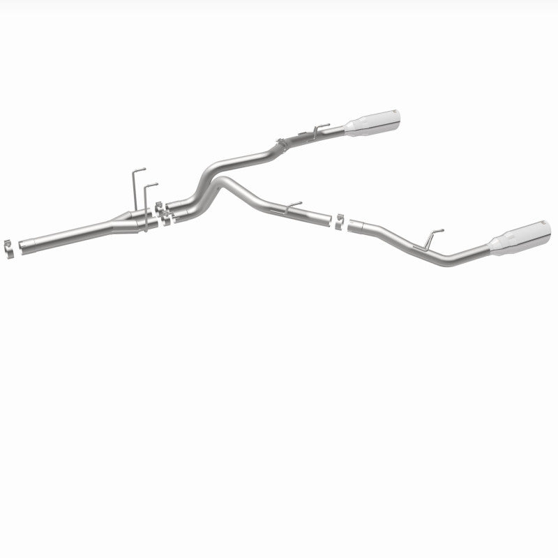 The MagnaFlow Ram 1500 Street Series 19359 has been designed from the ground up to make your 3.0L 2014-2018 Ram 1500 sound like and haul like it should thanks to its heavily dyno-tested, durable and corrosion resistant stainless steel design. This Ram 1500 exhaust kit is tuned to produce Moderate exterior and Mild interior sound levels through its fast-flowing, mandrel bent 3in. main piping and is compatible with 3.0L engines. The system terminates in a Dual Split Rear exit with 5in. Polished Welded-Double Wall-Angle Cut-Rolled Edge tip. Exhaust kit 19359 is tuned to produce our powerful, resonant signature exhaust note at Moderate exterior and Mild interior sound levels. It does this with a filter-back layout that replaces your diesel truck’s stock exhaust system from the particulate filter on back. Extensive 3D scans made during the development process has resulted in an easy-to-install, direct-fit design. Once you hit the road or trail with this exhaust system hooked up your rig will stand out from the rest as the truest of trucks. 19359 is produced using CNC precision robotic manufacturing techniques and is backed by MagnaFlow’s limited lifetime construction warranty.