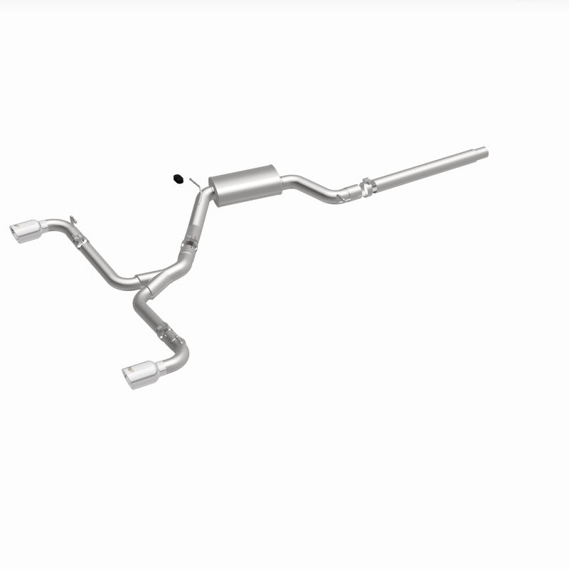 The MagnaFlow 2018-2021 Volkswagen GTI Touring Series Cat-Back Performance Exhaust System 19435 is the perfect partner for your 2.0L 2018-2021 Volkswagen GTI to take on a grand tour or a weekend cruise thanks to the powerful, resonant exhaust note and dyno-proven performance it brings to the table. This durable, corrosion resistant stainless steel exhaust kit is engineered to conquer the miles with ease while enhancing your driving experience with Moderate exterior and Mild interior sound levels generated through its fast-flowing, mandrel bent 3in. main piping and 1 Straight-Through muffler that terminate in a Dual Split Rear exit with 4in. Polished Welded-On Double Wall Angle Cut Rolled Edge tips. 19435 features a cat-back layout design to replace your import's stock exhaust components from the catalytic converter on back. This Volkswagen GTI exhaust system is compatible with 2018-2021 engines. The use of extensive 3D scans made during the development process has resulted in an easy-to-install, direct-fit design that fits your Volkswagen GTI like a glove. 19435 is produced using CNC precision robotic manufacturing techniques and is backed by MagnaFlow's limited lifetime construction warranty.