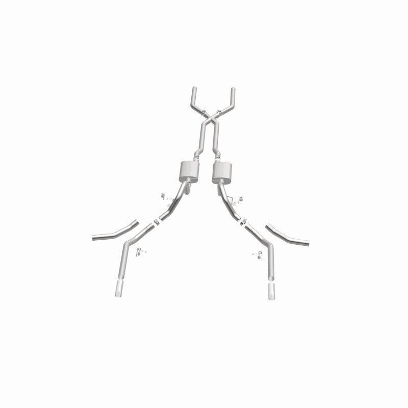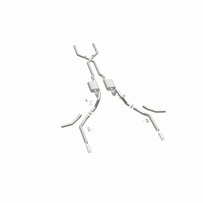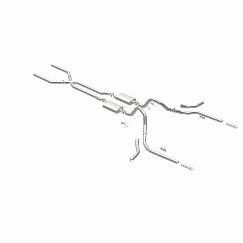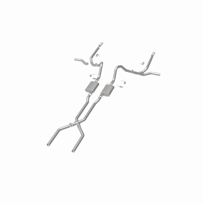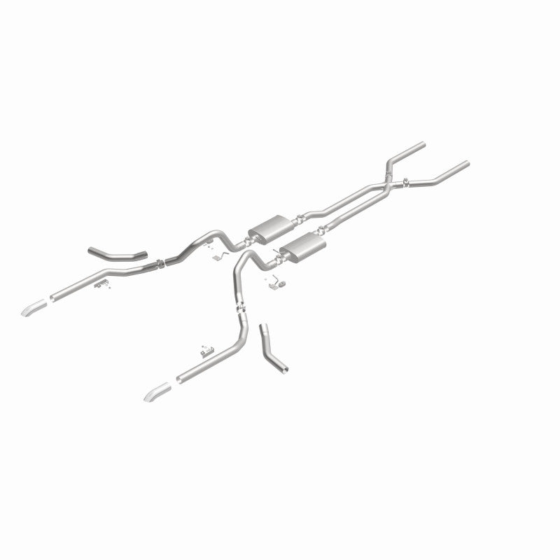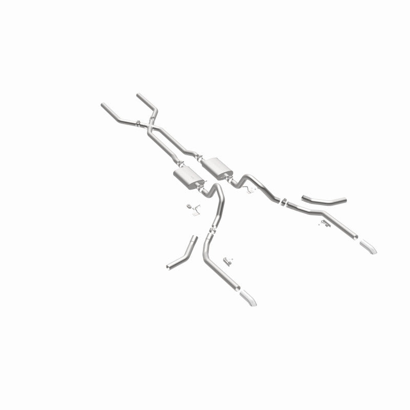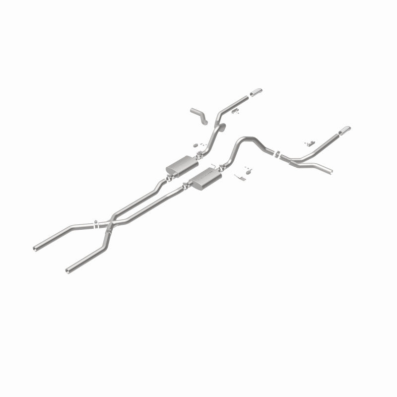 The MagnaFlow 1965-1969 Chevrolet Impala Street Series Crossmember-Back Performance Exhaust System 15165 brings enhanced engine sound and dyno-proven performance to your 3.8L, 4.1L, 4.6L, 5.0L, 5.3L, 5.4L, 5.7L, 6.5L, 6.7L, 7.0L 1965-1969 Chevrolet Impala with a healthy helping of our deep, resonant signature exhaust note at Moderate exterior and Mild interior sound levels. Thanks to its durable, corrosion resistant stainless steel design, this Chevrolet Impala exhaust system will handle whatever tarmac you decide to leave your mark on. This performance exhaust kit features a crossmember-back layout designed to replace your Chevrolet Impala's exhaust system from the crossmember on back. With its fast-flowing, mandrel bent 2.5in. main piping and 2 Straight-Through mufflers ending in a Multiple Exit Options exit with 2.5in. Polished Weld-On Single Wall Turndown Cut Edge tips, your muscle car will be sounding as awesome as it looks. Extensive 3D scanning during development has resulted in a direct-fit design that you can easily install yourself. 15165 is produced using CNC precision robotic manufacturing techniques and is backed by MagnaFlow's limited lifetime construction warranty.