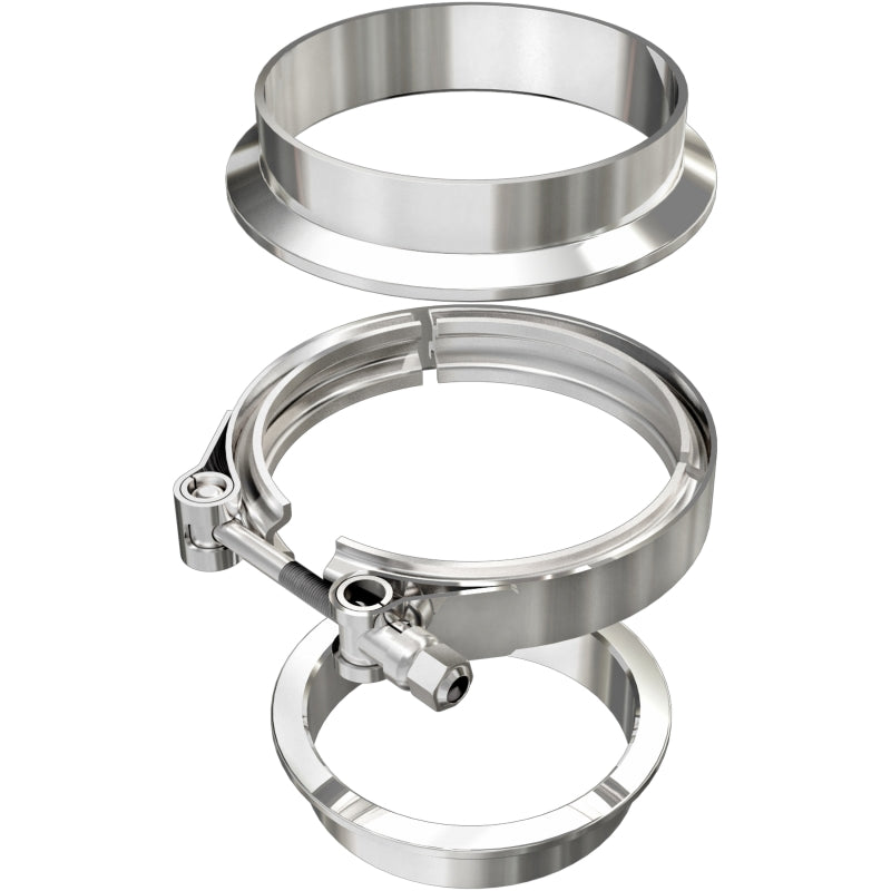 MagnaFlow offers stainless steel exhaust band clamps. Compared with conventional U-clamps and flat band clamps, these high torque clamps offer a much tighter seal by using a reaction block that transfers bolt torque into clamp strength assuring a tight seal.