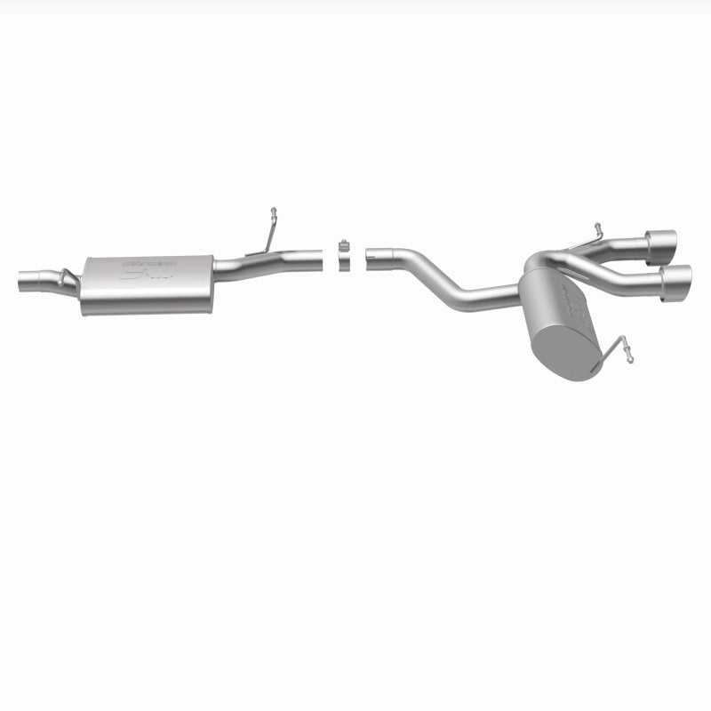 The MagnaFlow 2008 Volkswagen R32 Sport Series Cat-Back Performance Exhaust System 16501 enhances your 3.2L 2008-2008 Volkswagen R32 with an aggressive character that is sure to help you stand out from the other Volkswagen R32 you encounter on the street. With its 2.5in. diameter fast-flowing mandrel bent main piping that passes through 2 Straight-Through mufflers before ending in a Dual Center Rear exit with 4in. Polished Welded-On Double Wall Angle Cut Folded Edge tips, this dyno-proven Volkswagen R32 exhaust system refuses to be ignored. As such, 16501 is tuned to produce our powerful, resonant signature exhaust note at Aggressive exterior and Moderate interior sound levels, so please check to ensure compliance with local noise regulations. The system's cat-back design replaces all your import's stock exhaust components from the catalytic converter on back. Extensive 3D scanning and CNC precision robotic manufacturing techniques are used to ensure that your exhaust system fits perfectly with just a simple do-it-yourself installation process. The durable, corrosion resistant stainless steel construction of 16501 is backed by MagnaFlow's limited lifetime warranty.
