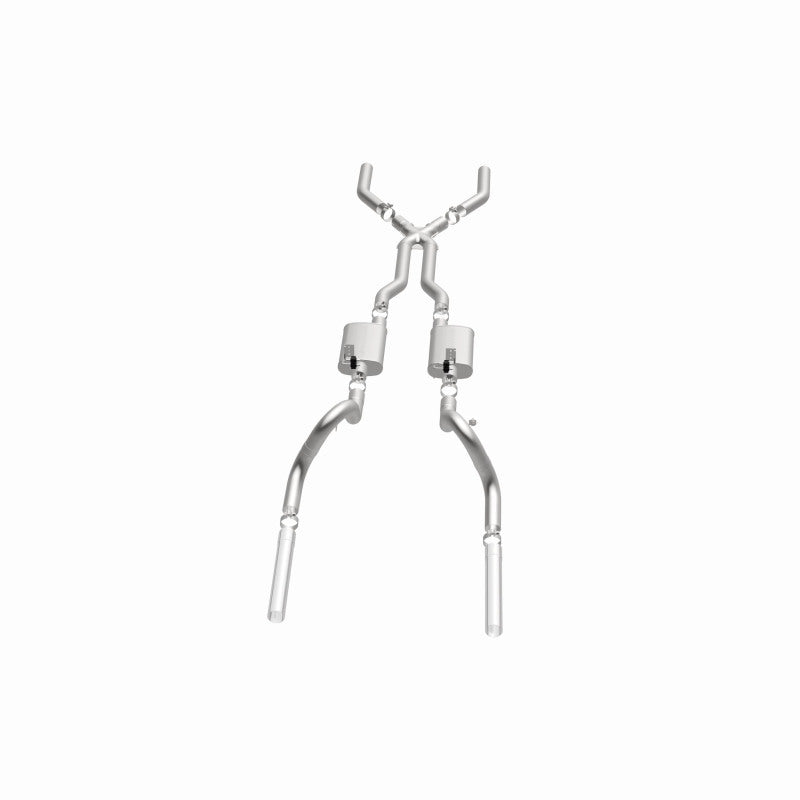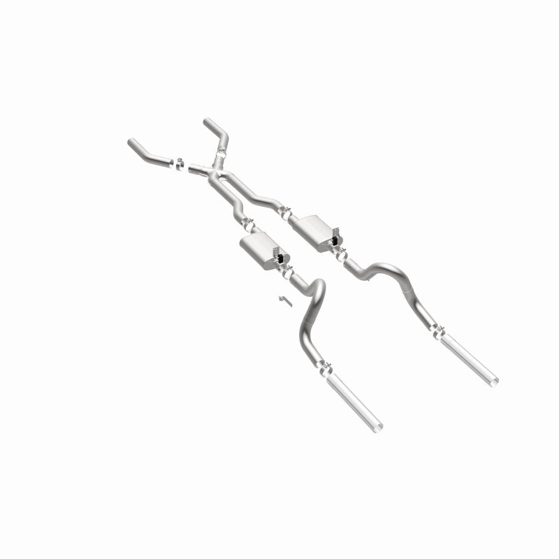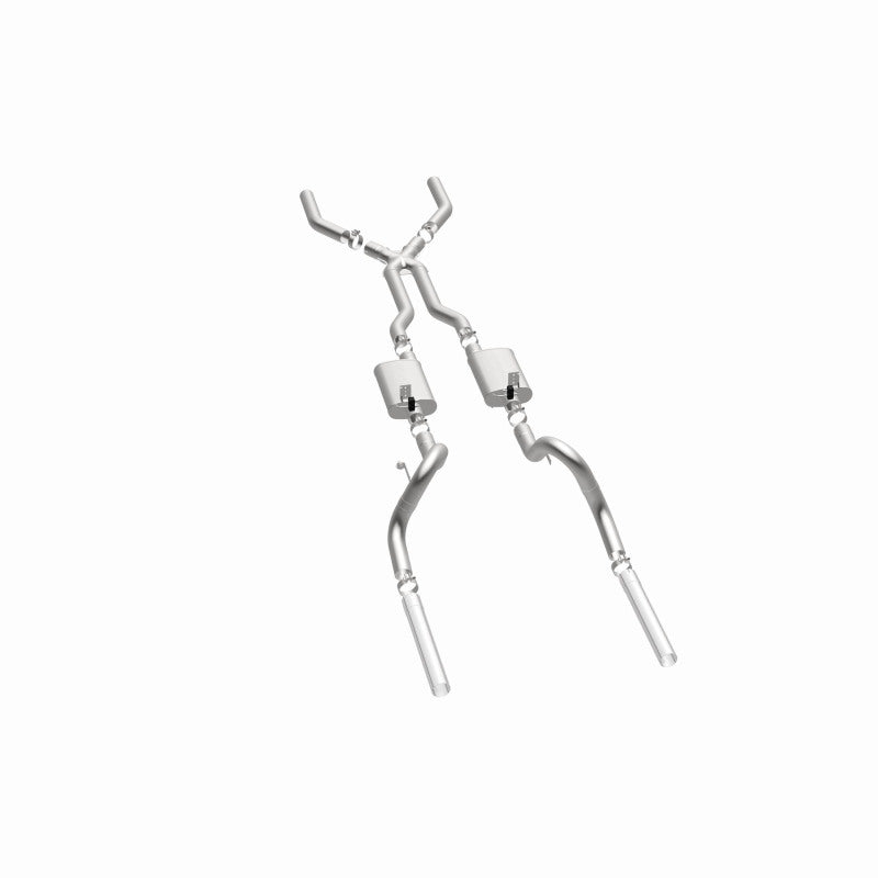 The MagnaFlow 1964-1966 Ford Mustang Street Series Crossmember-Back Performance Exhaust System brings enhanced engine sound and dyno-proven performance to your 2.8L, 3.3L, 4.3L, 4.7L 1964-1966 Ford Mustang with a healthy helping of our deep, resonant signature exhaust note at Aggressive exterior and Moderate interior sound levels. Thanks to its durable, corrosion resistant stainless steel design, this Ford Mustang exhaust system will handle whatever tarmac you decide to leave your mark on. This performance exhaust kit features a crossmember-back layout designed to replace your Ford Mustang's exhaust system from the crossmember on back. With its fast-flowing, mandrel bent 3in. main piping and 2 Straight-Through mufflers ending in a Dual Split Rear exit that you can enhance with tips of your choosing, your muscle car will be sounding as awesome as it looks. Extensive 3D scanning during development has resulted in a direct-fit design that you can easily install yourself. 15817 is produced using CNC precision robotic manufacturing techniques and is backed by MagnaFlow's limited lifetime construction warranty.