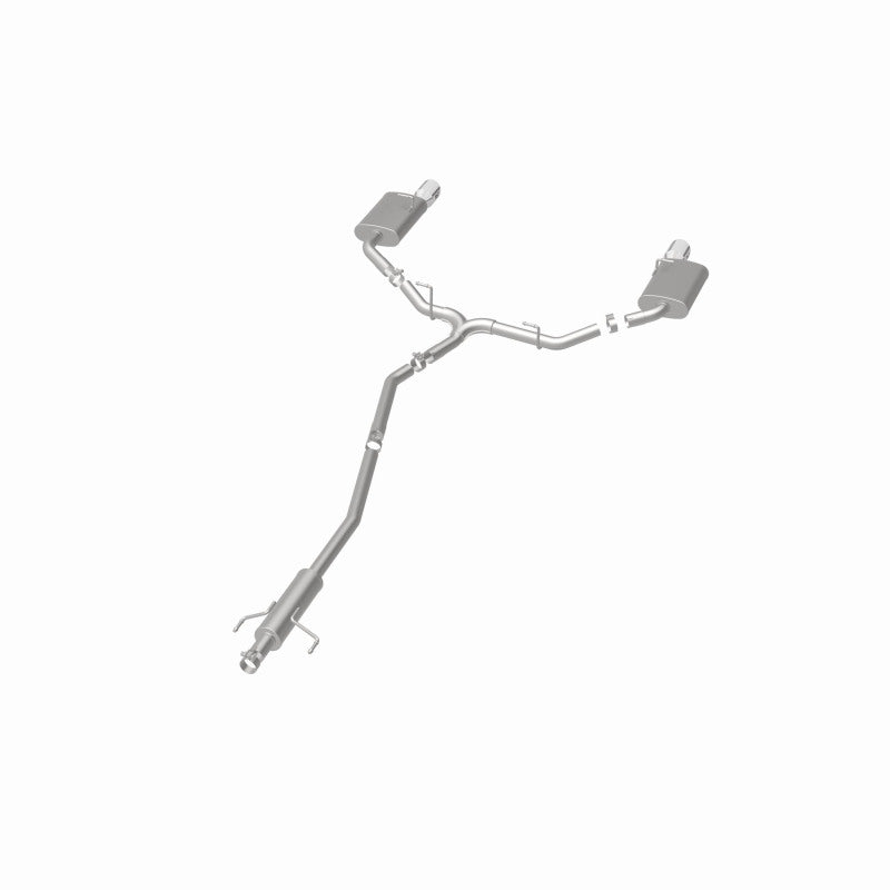 The MagnaFlow 2007-2012 Ford Fusion Street Series Cat-Back Performance Exhaust System 15552 brings out the personality of your 3.0L, 3.5L 2007-2012 Ford Fusion with our signature resonant, powerful engine tone and dyno-proven performance. Thanks to its fast-flowing, mandrel bent 2.25in. main piping and 3 Straight-Through mufflers ending in a Dual Split Rear exit with 4in. Polished Welded-On Double Wall Angle Cut Folded Edge tips, this Ford Fusion exhaust kit has the performance chops to match its sporty sound and appearance. Upgrade your ride to the next level with an exhaust that has the pipes to put other Ford Fusion's to shame. With this system your vehicle will be producing Moderate exterior and Mild interior sound levels while leaving other cars and trucks feeling envious at every stoplight. Exhaust kit 15552 features a cat-back layout that replaces your ride's stock exhaust components from near the catalytic converter on back. Extensive 3D scanning during development has resulted in a direct-fit design that you can easily install yourself. 15552 is produced using CNC precision robotic manufacturing techniques and is backed by MagnaFlow's 1-year limited finish warranty and limited lifetime construction warranty.