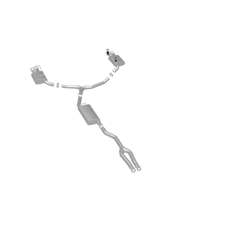 The MagnaFlow 2005-2010 Chrysler 300 Street Series Cat-Back Performance Exhaust System 16623 brings out the personality of your 2.7L, 3.5L 2005-2010 Chrysler 300 with our signature resonant, powerful engine tone and dyno-proven performance. Thanks to its fast-flowing, mandrel bent 2.5in. main piping and 3 Straight-Through mufflers ending in a Quad Split Rear exit with 3in. Polished Welded-On Double Wall Angle Cut Rolled Edge tips, this Chrysler 300 exhaust kit has the performance chops to match its sporty sound and appearance. Upgrade your ride to the next level with an exhaust that has the pipes to put other Chrysler 300's to shame. With this system your vehicle will be producing Moderate exterior and Mild interior sound levels while leaving other cars and trucks feeling envious at every stoplight. Exhaust kit 16623 features a cat-back layout that replaces your ride's stock exhaust components from near the catalytic converter on back. Extensive 3D scanning during development has resulted in a direct-fit design that you can easily install yourself. 16623 is produced using CNC precision robotic manufacturing techniques and is backed by MagnaFlow's 1-year limited finish warranty and limited lifetime construction warranty.