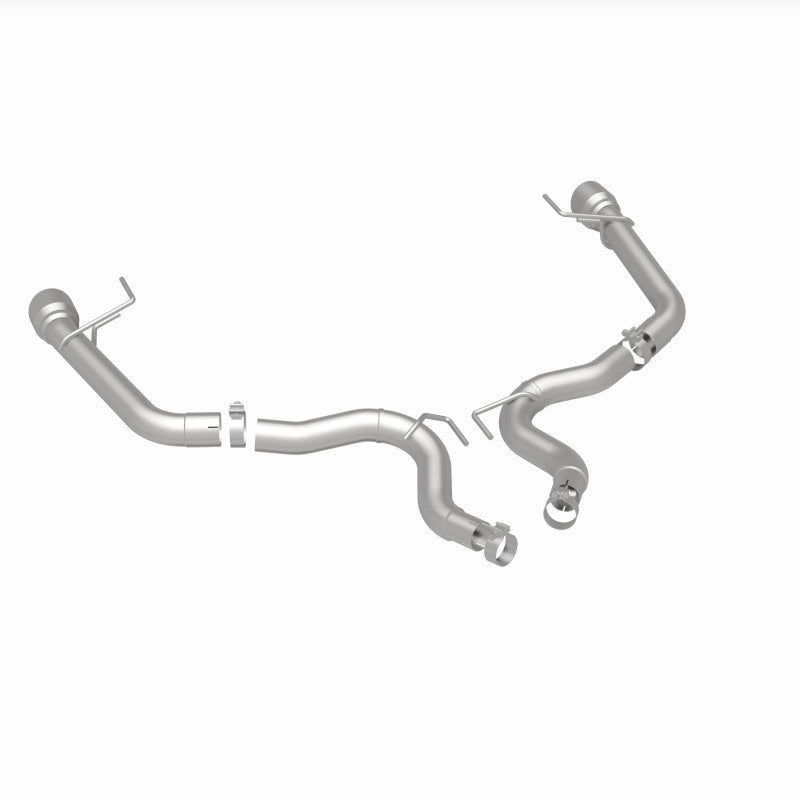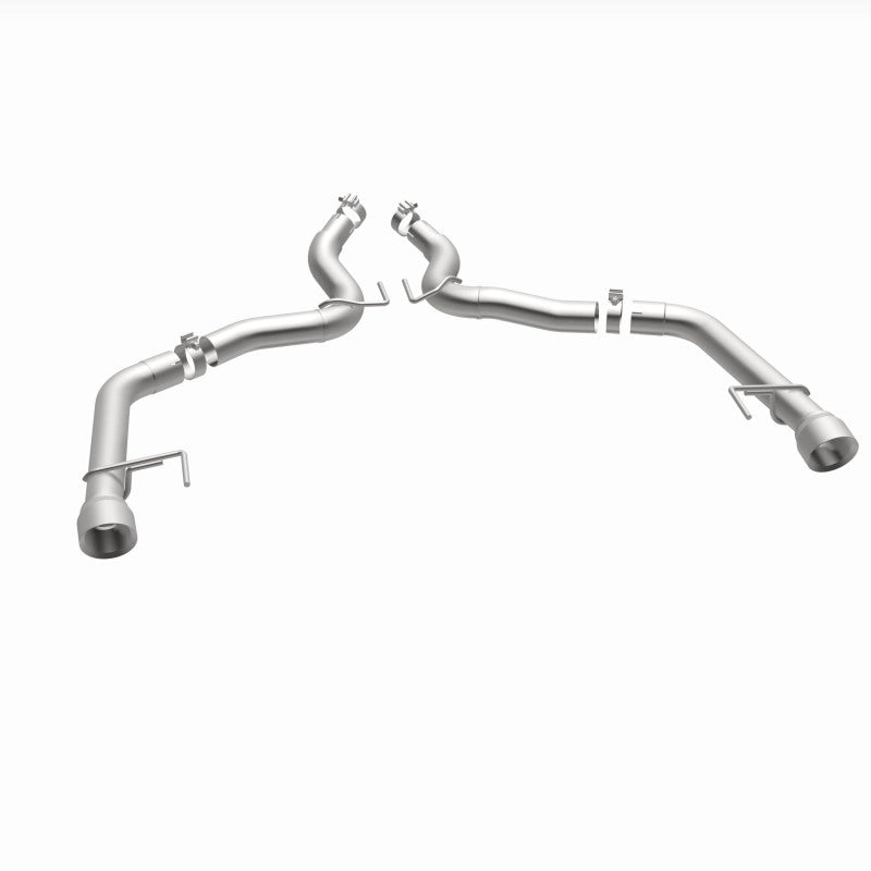 The MagnaFlow 2015-2017 Ford Mustang Race Series Axle-Back Performance Exhaust System 19344 doesn't leave any performance on the table with a race-ready, light weight, dyno-proven design ready to help your 5.0L 2015-2017 Ford Mustang take on any pretenders, whether on the track or the street. Exhaust kit 19344 is engineered to produce our powerful, resonant signature exhaust note at Very Aggressive exterior and Aggressive interior sound levels with an axle-back layout that replaces your vehicle's exhaust components from near the rear axle on back. Please check to ensure compliance with local noise regulations. This Ford Mustang exhaust kit features fast-flowing mandrel bent 3in. diameter main piping that ends in a Dual Split Rear exit with 4.5in. Polished Welded-On Double Wall Angle Cut Folded Edge tips. Extensive 3D scanning during development and the use of advanced CNC precision robotic manufacturing techniques ensures that 19344's direct-fit design fits so perfectly that you can easily install the system yourself. The durable, corrosion resistant stainless steel construction of exhaust system 19344 is backed by MagnaFlow's limited lifetime warranty.