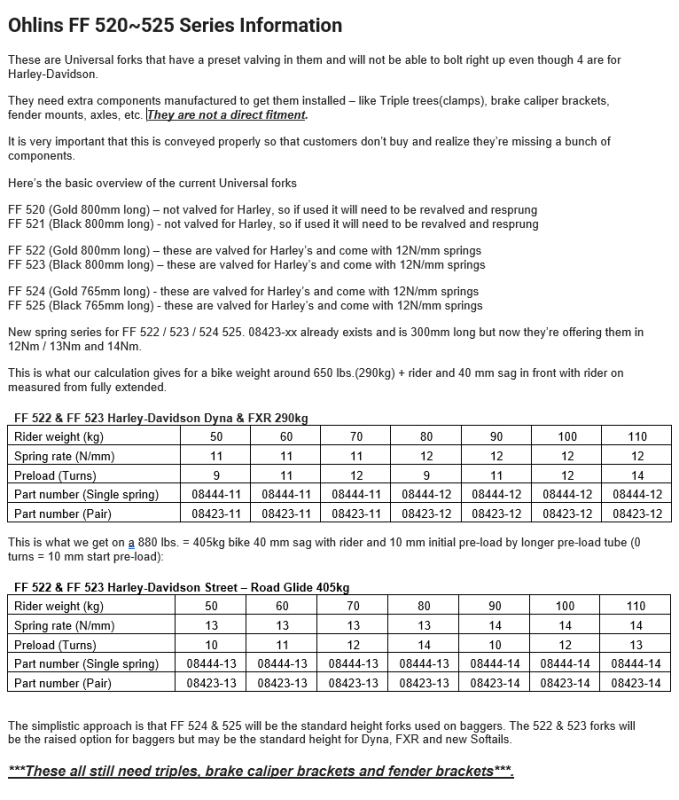 All custom gold forks are fully adjustable, with proven performance throughout years of various applications. Perfect for cafe racers, scramblers and other custom applications, the FF 520 features a top cap that allows the adjustment of spring preload and compression, in each leg individually. An external adjuster on the bottom clamps lets you customize the rebound. Clean fork bottoms without brake caliper mountings provides a clean look for those with left-side only brake setups.