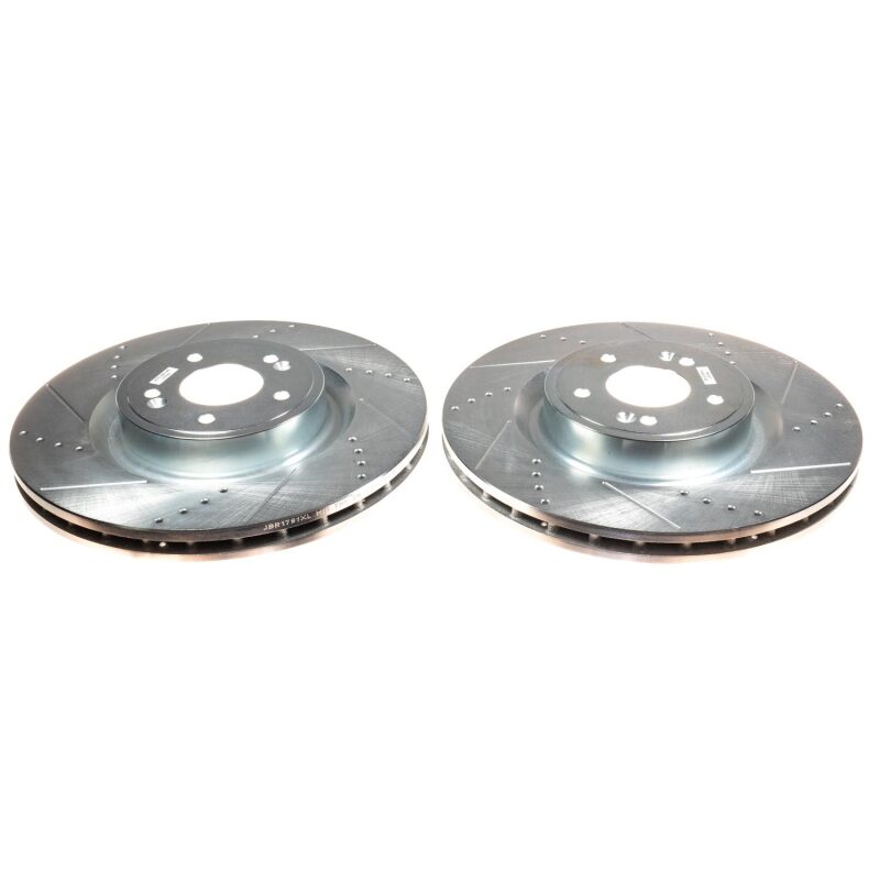 Power Stop drilled and slotted rotors provide a bolt-on upgrade for improved brake cooling and performance. Precision cross-drilled for maximum cooling and maximum performance during extreme conditions; rounded slots sweep away gasses, dust, and moisture to keep a clean friction contact patch on the rotor surface. Silver zinc dichromate plating resists rust and corrosion. With a direct OE fit, there are no special modifications needed.