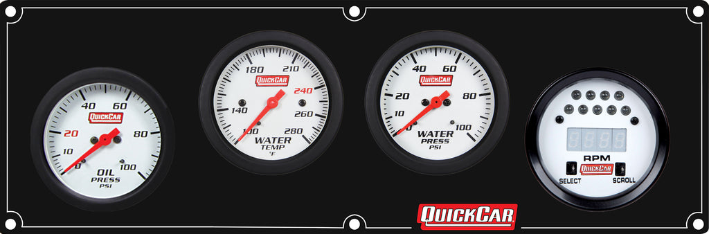 Gauge Panel Assembly - Extreme - Plain Panel - Oil Pressure / Water Temperature / Water Pressure / Tachometer - 2-5/8 in Diameter - White Face - Warning Light - Kit