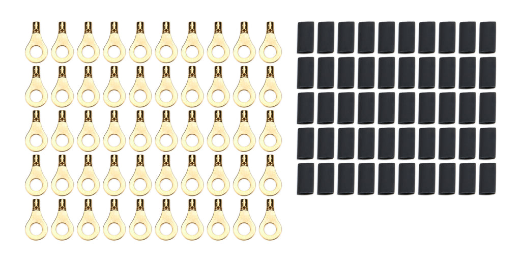 Ring Terminal - 16-14 Gauge Wire - 1/4 in Hole - Heat Shrink Included - Copper - Set of 50
