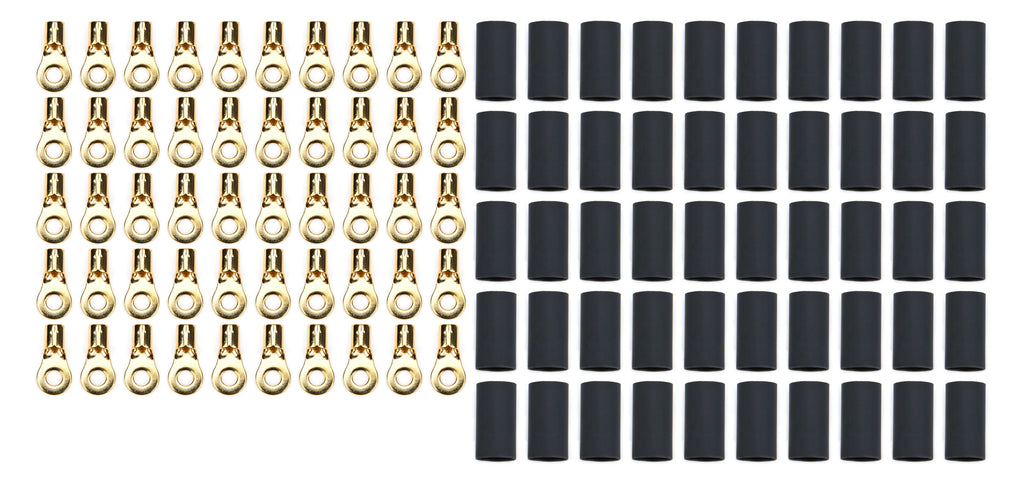 Ring Terminal - 10-8 Gauge Wire - Number 10 Hole - Heat Shrink Included - Copper - Set of 50