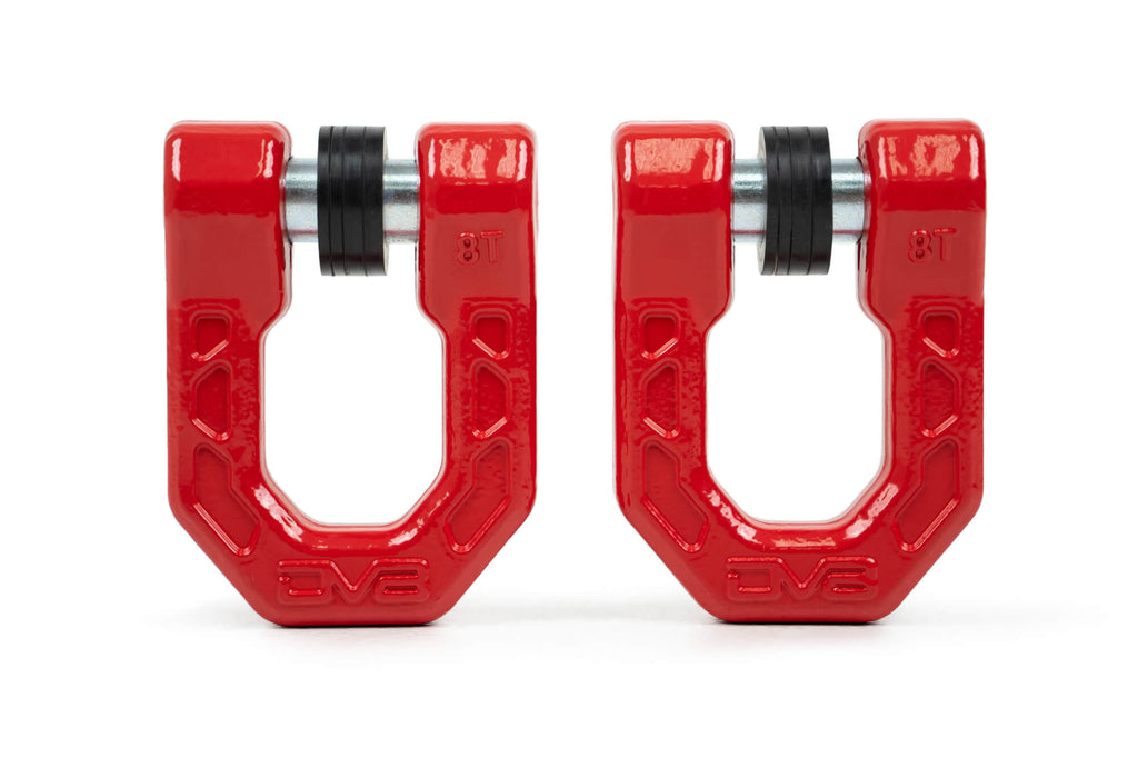 | Description_MKT | With an 8 ton working load limit, our Elite Series D-Ring Shackles were designed to handle the toughest of recovery situations. The ?-Inch chromoly pin fits industry standard D-ring mounts and sits flush with the outside of the shackle for a clean aesthetic. The forged shackles are 1 1/16-inch thick, with a 72,000lb breaking strength. These D-rings are sold as a pair, and include (4) ?-inch and (4) 3/16-inch isolators to help prevent rattling or movement while driving. Available in black, red, & gray heavy duty powder coat finishes, you have options to complement your body color or existing accessories. Installation is simple, and requires only a ?-inch ratchet or chuck to set the pin. |