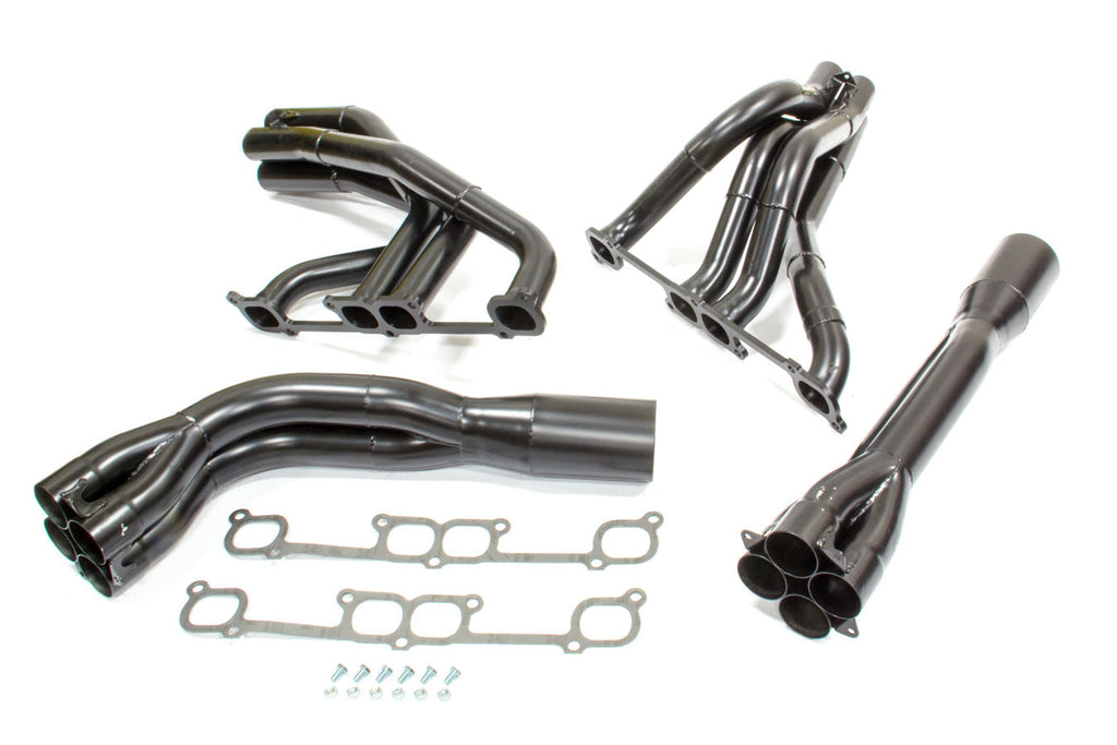 Headers - Dirt Late Model - Tri-Y - 1.75 to 1.875 to 2 in Primary - 3.5 in Collector - Gaskets Included - Steel - Black Paint - 18 Degree Head - Small Block Chevy - Kit