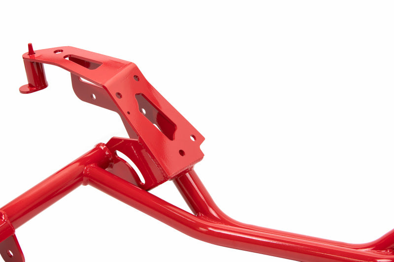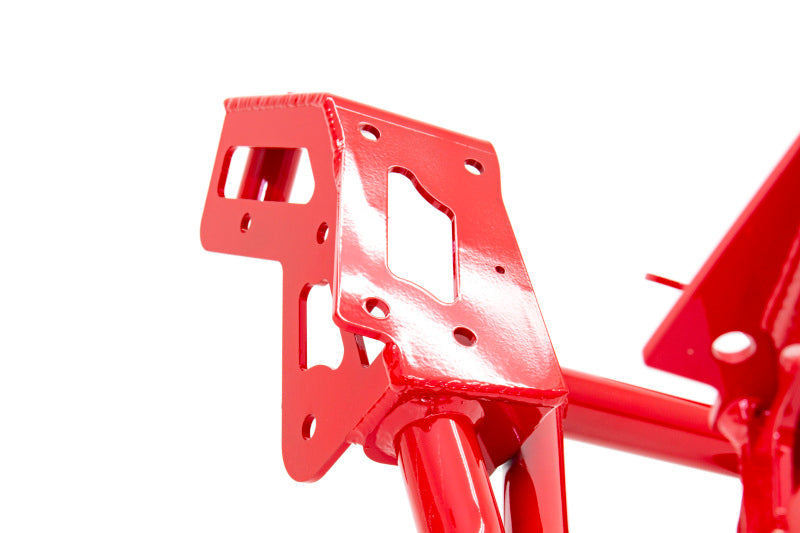 We all know weight equals horsepower. UMI’s direct bolt-in replacement K-member instantly removes 20 lbs of front end weight from your ride and helps your existing horsepower work for you. Strong dual tube construction and a host of high-strength features ensure the P/N 2401 will survive street use, drag strip blasts and autocross action. The K-member is fabricated from CNC machined 3/16” thick mild steel held together by a strong dual tube lower section. Factory clamshell and engine mounts bolt to the precision machined mounting pads while both factory and aftermarket suspension is located by strong boxed mounting points. Lightening holes are CNC machined into the mounting plates and the tubular construction provides added clearance for aftermarket exhaust. The modular design permits stock spring and strut use or simply remove the spring pockets and convert to coil-overs. Street and track testing on our ’89 IROC test car has shown this K-member to be strong, reliable and a great upgrade for your high performance ride. Available in tough powder coated red or black finish. Manufactured with pride in Philipsburg, PA - USA