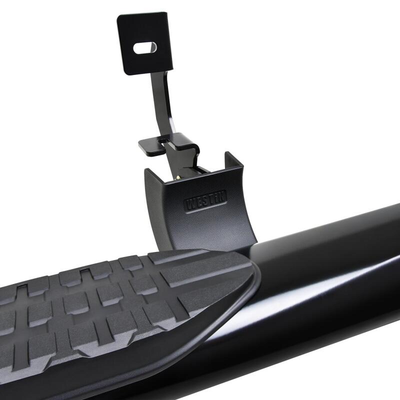 Westins Pro Traxx 5 Oval Nerf Step Bars feature a 5in. oval tube with a heavy-duty step pad that provides a wider and more secure step area. They feature 30 factory style bends that have seamless domed ends so there are no end-caps or exposed bolt heads. Applications are bolt-on installation.